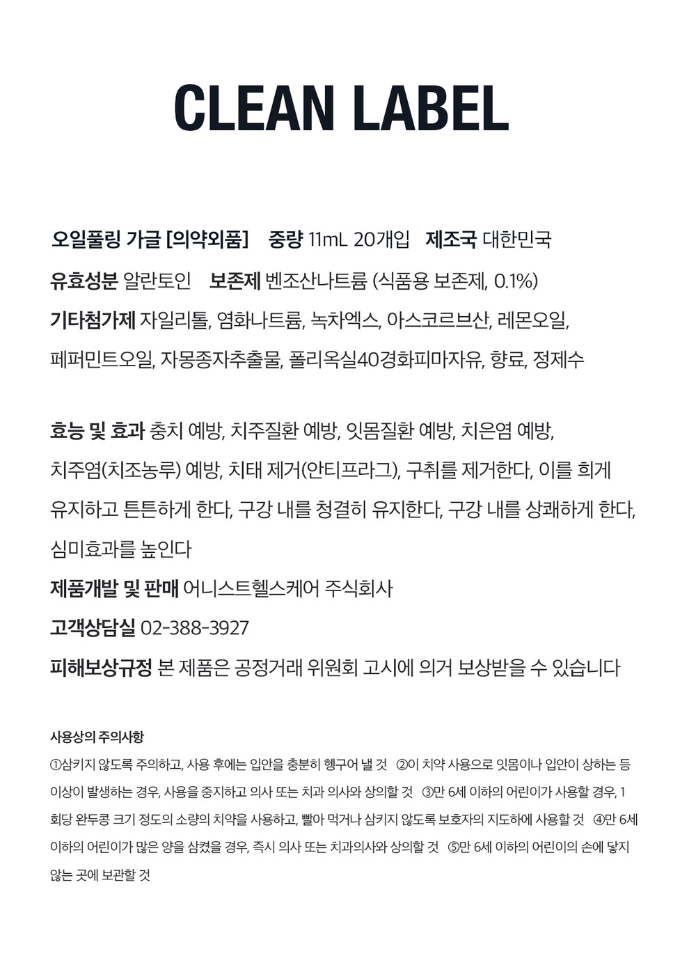 입냄새완화 임산부 사용가능한 비건가글 오일풀링 가글 11mL 24개입 (3팩)